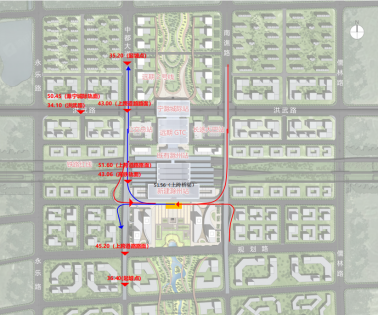 2.1车站范围的中都大道、南谯路高架方案、进出站匝道组织方案、落客平台等是否统一采用同济院编制的《滁州高铁站南北片区城市设计》中下图所示方案作为输入条件。
